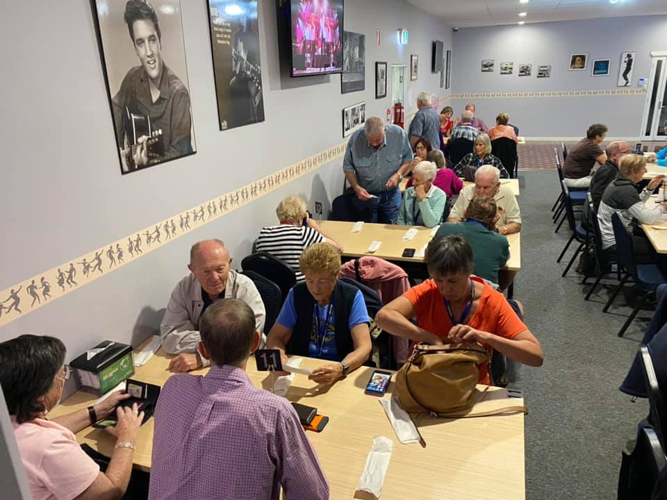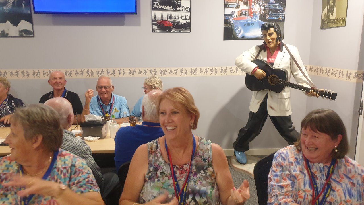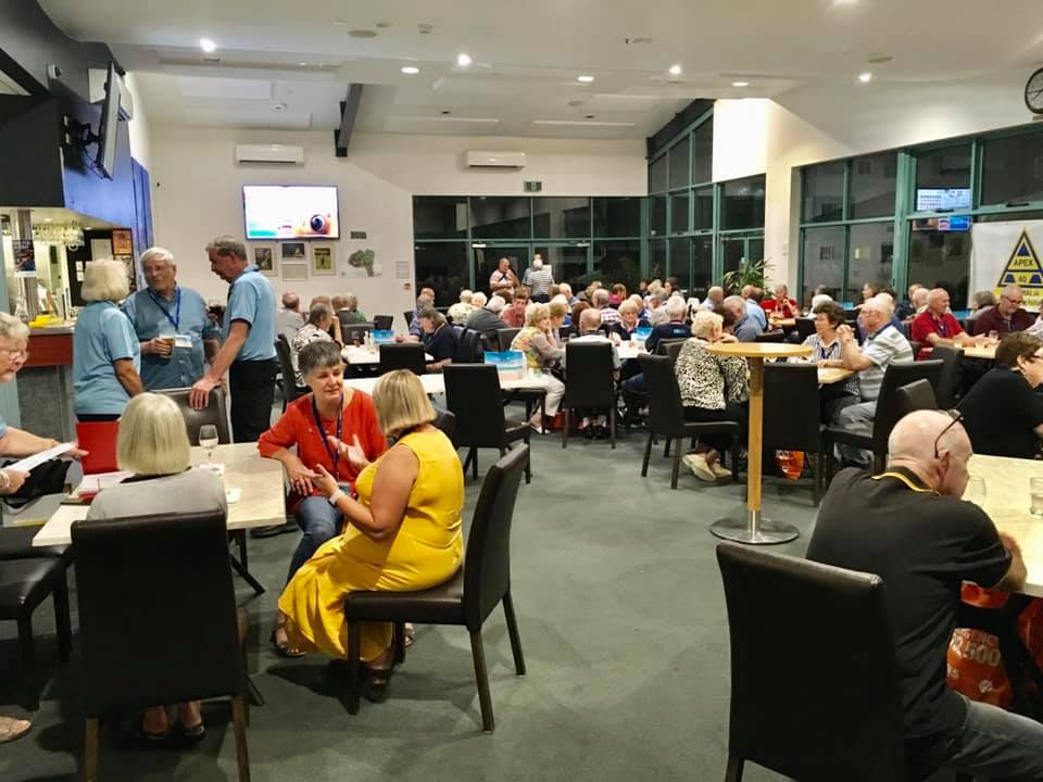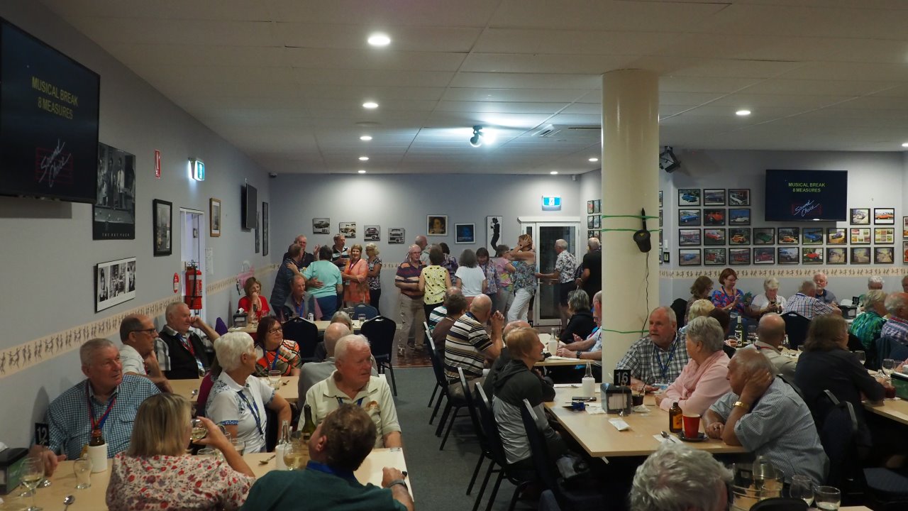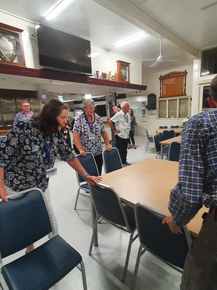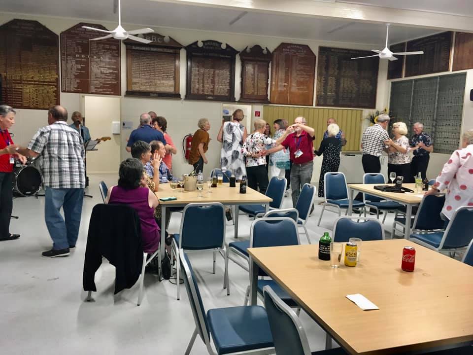 This evening we went to Bundaberg Bowling Club where the volunteers maned the bar whilst Elegant Catering provided us a BBQ dinner and we had music provided by a local senior aged band. At the end of the night we had to put tables and chairs back to the normal setup.