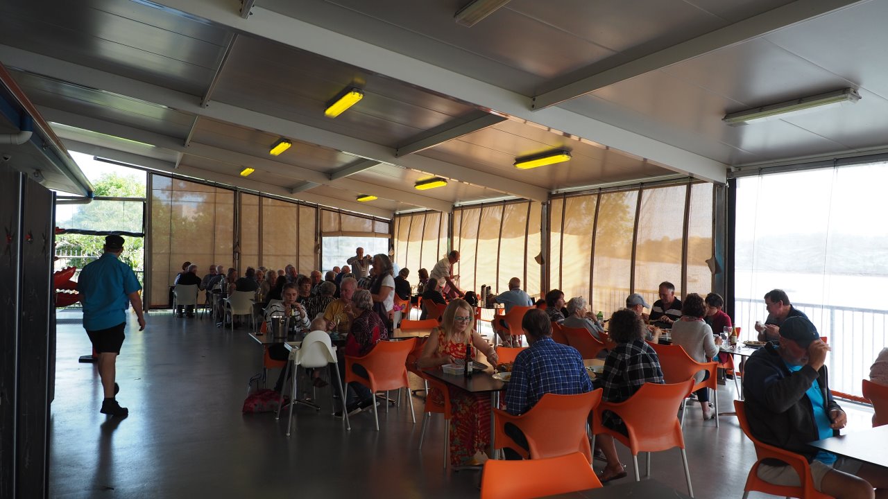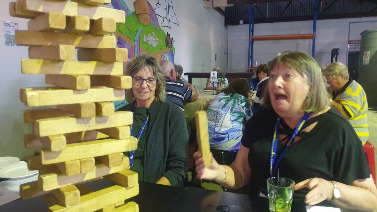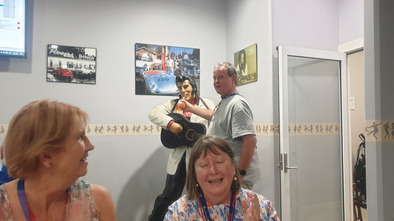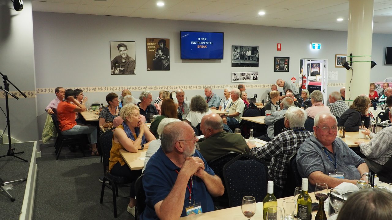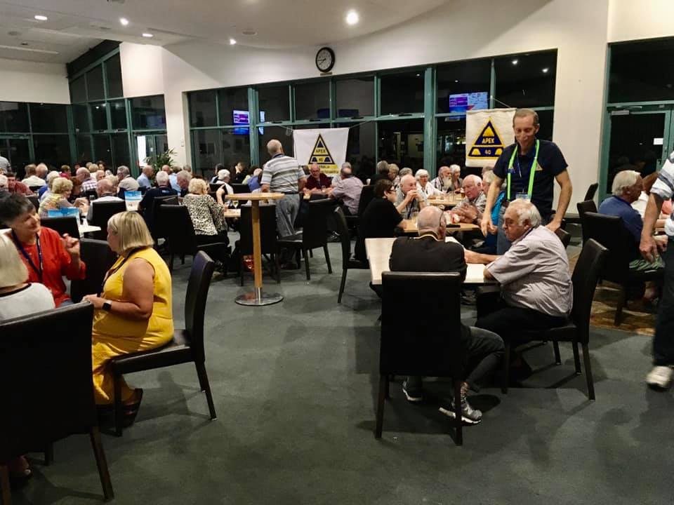 This evening we went to Bundaberg Bowling Club where the volunteers maned the bar whilst Elegant Catering provided us a BBQ dinner and we had music provided by a local senior aged band. At the end of the night we had to put tables and chairs back to the normal setup.